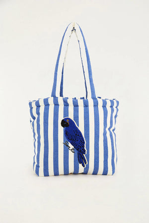 Striped macaw sun bag. Ideal for sunny days. Made of terry cotton with a thread embroidery effect, adding texture to the piece. What you don't wear, you live. FARM Etc has arrived, the lifestyle brand of FARM Rio.