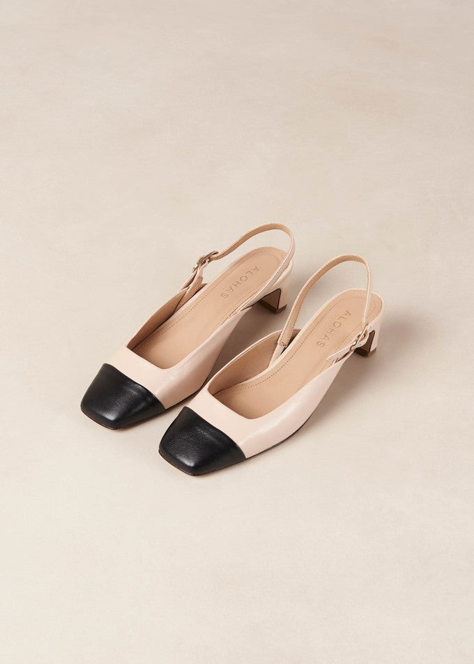 Lindy Bicolor Cream Black Leather Pumps