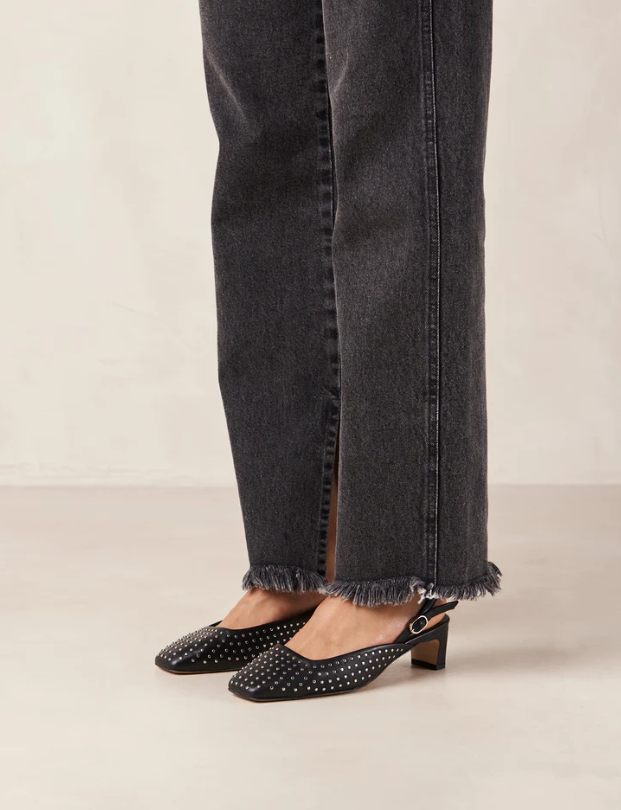 Alohas Lindy Studs Black Leather Pumps $169.00 USD