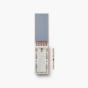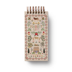Organize your grocery list with this spiral-bound market pad, featuring 65 lined, perforated sheets and cross stitch-inspired illustrations on the cover.