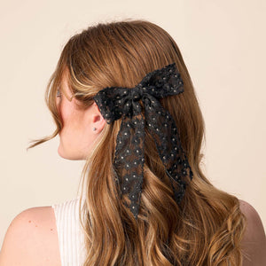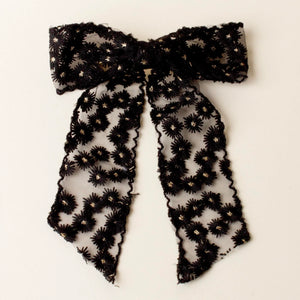 Add a pop of playful elegance to your look with our Ditsy Daisies Bow! Made from sheer fabric, this bow is beautifully decorated with dainty flowers, bringing a soft, floral charm to your hairstyle. The gold barrette clip closure ensures a secure and comfortable all-day hold.