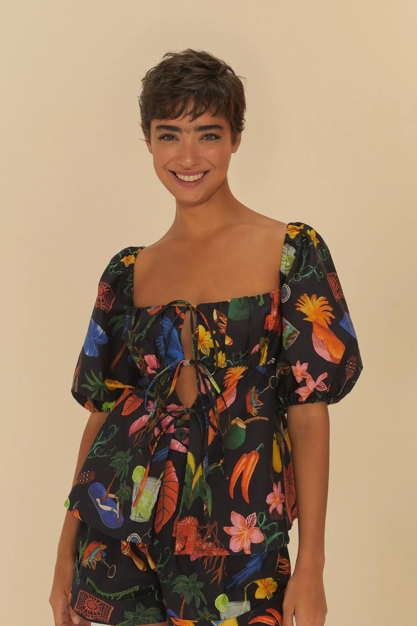 Farm Rio BLUSA BOTAO TROPICAL VINTAGE $85.00 USD