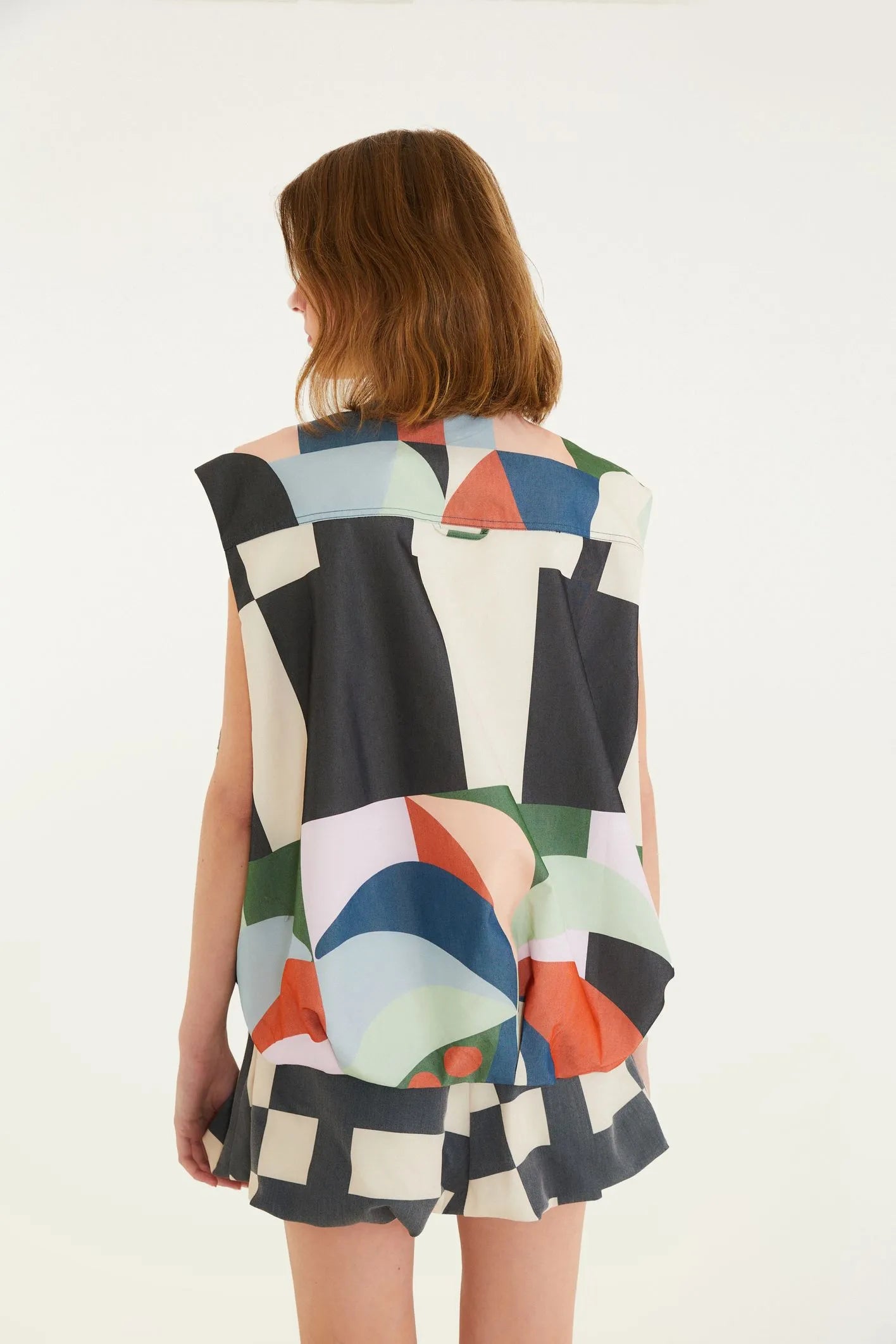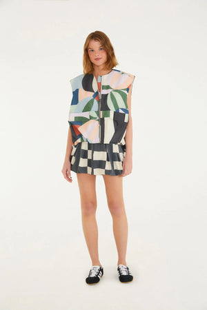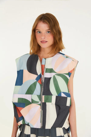 Recanto dos Coqueiros printed vest. This sleeveless, loose-fitting garment features a front zipper closure and an innovative design that brings a tropical touch to your look. The exclusive print adds authentic charm, ideal for casual occasions or to add a special touch to your everyday outfit.